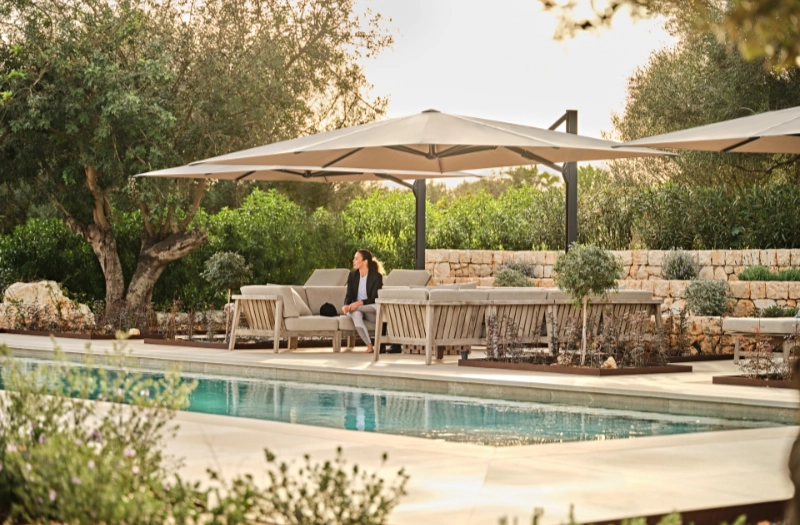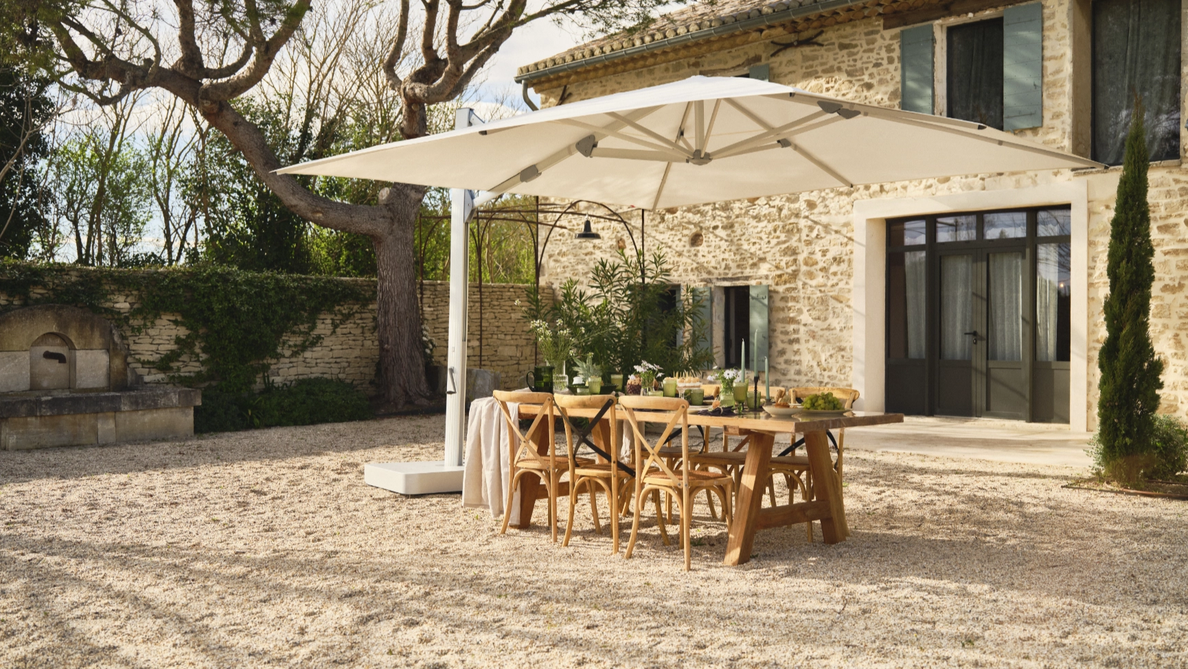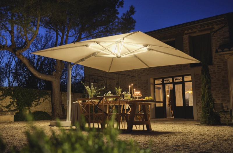 Dieser Sonnenschirm vereint innovative Technik, hochwertige Materialien und modernes Design. Mit seinem robusten natureloxierten Aluminiumgestell und einer Vielzahl an optionalen Features wie integrierter LED-Beleuchtung und Motorantrieb wird er zum perfekten Begleiter für stilvolle Outdoor-Bereiche. Dank seines gegenläufigen Öffnungsprinzips bietet er eine besonders hohe Schließhöhe und Komfort in der Handhabung. Wählen Sie aus verschiedenen Formen, Farben und Extras, um Ihren individuellen Sonnenschirm zu gestalten.