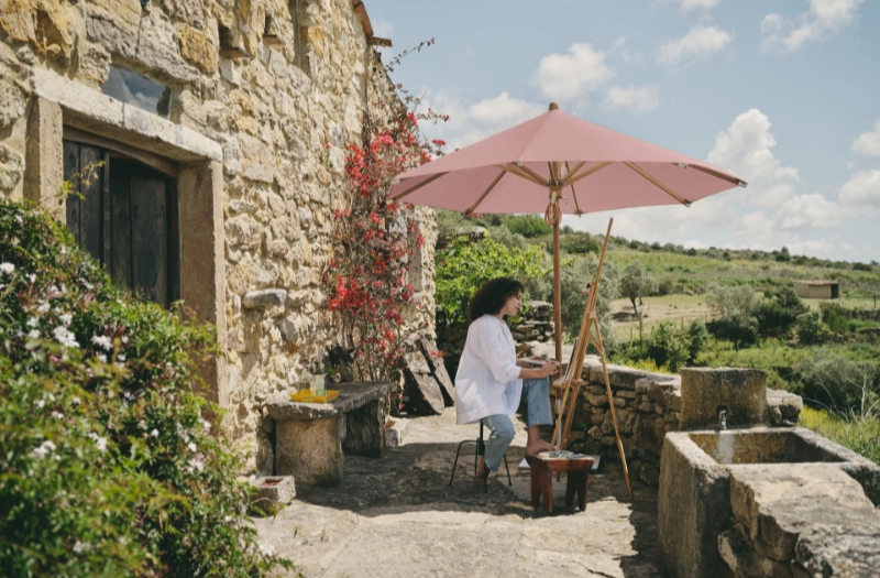 Dieser edle Sonnenschirm aus hochwertigem Teakholz verbindet natürliche Eleganz mit praktischer Funktionalität. Der Flaschenzugmechanismus sorgt für eine einfache Bedienung, während die hochwertigen Stoffbezüge mit UV-Schutz zuverlässigen Sonnenschutz bieten. Perfekt für stilvolle Gärten, Terrassen oder Gastronomiebereiche!
